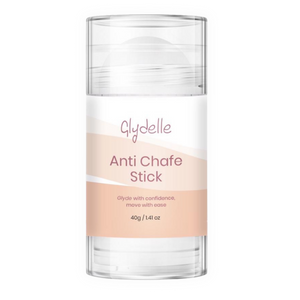 The Glydelle anti-chafe stick is compact but mighty about the size of a standard deodorant stick, making it perfect for handbags, gym bags, and travel.